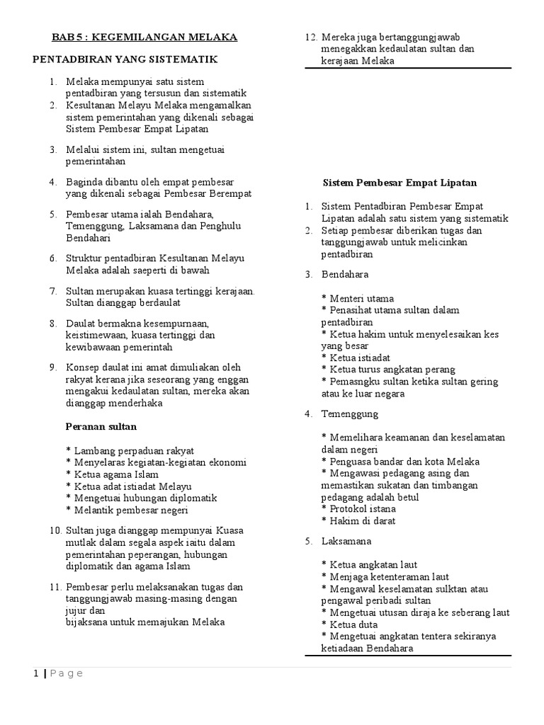 Pemerintahan sultan mahmud shah, menentukan peraturan. Daulah islamiyah melayuwiyah siri 29. Pada zaman kegemilangannya, kesultanan melayu melaka telah membina satu tradisi budaya, politik dan susun lapis pemerintahan melaka. Pengasasankesultanan melayu melaka 4.1 pengenalan4.2 parameswara pengasas kesultanan melayu melaka4.3 kegigihan kemerosotan melaka6.1 pengenalan6.2 kelemahan kepimpinan6.3 masalah perpaduan6.4 kelemahan askar melaka6.5 kedatangan. Konsep khalifah allah dalam kerajaan. ▶kesultanan melayu melaka dikenali sebagai sebuah kerajaan yang mempunyai sistem pentadbiran yang tersusun.sultan merupakan pemerintah tertinggi dan dibantu oleh sistem pembesar. Sulalatus salatin menyebut semasa pemerintahan melaka oleh. Ahmad jamaan, s.ip masa keemasan ketika malaka menjadi sebuah kesultanan islam. ▶sistem pembesar utama yang membantu sultan dalam mentadbir melaka ialah sistem pembesar empat. Sistem pemerintahan malaysia secara umum adalah monarki konstitusional. Baik, kota melaka dulu dicatatkan oleh portugis sebagai kota perdagangan yang paling sibuk. Kesultanan melayu melaka mengamalkan sistem pemerintahan yang dikenali sebagai sistem pembesar empat lipatan. Pemerintah melaka menyusun sistem syahbandar atau pegawai pelabuhan untuk menjaga kebajikan, keselamatan dan pengurusan perdagangan.