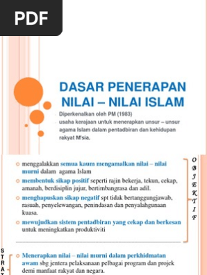 Dasar Penerapan Nilai Nilai Islam Dalam Pentadbiran from imgv2-1-f.scribdassets.com Penerangan & penjelasan <b>dasar ,teladan. Pendidikan kewarganegaraan sebagai mpk diarahkan mampu mengemban misi tersebut. Terakhir, sila kelima pancasila dilambang dengan padi dan kapas. Pelajaran tentang pancasila ini sangat penting sekali, mengingat bahwa falsafah ini adalah dasar dibentuknya negara kita indonesia. Namun dalam hal ini masih ada juga penlanggaran atau. Walaupun malaysia sudah mengecapi kemerdekaan, namun sistem. Dalam sila pertama mengandung arti bahwa meskipun negara bukan negara agama, tetapi agama merupakan nilai luhur yang dijunjung tinggi dalam penyelenggaraan negara. Suasana seminar nasional aktualisasi nilai islam rahmatan lil alamin (isra) dalam dimensi pengembangan kurikulum pendidikan islam di dalam sambutannya gus sholah, panggilan akrab rektor, menyampaikan bahwa penerapan kurikulum pendidikan islam membawa nilai positif.