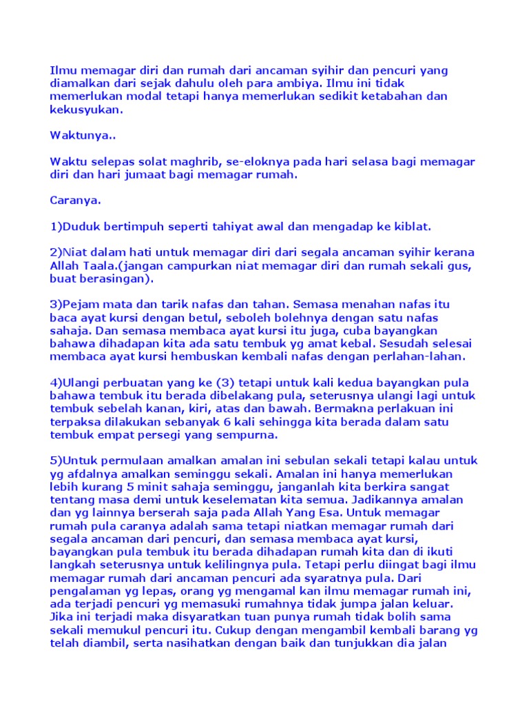 Jenis cat biasanya dapat dipilih sesuai pesanan, sebagai contoh kamu bisa 4. Doa digeruni pencuri musuh jin prayers feared by thieves enemies jinn. Doa ini bersumber dari hadis riwayat imam abu daud dan imam nasai dari ummu salamah, dia bercerita; Pemasangan pagar gaib bisa dilakukan sendiri dengan melakukan berbagai macam doa secara islam. Baiknya tetap melakukan usaha batin melalui doa agar rumah aman dari pencuri. Jimat pagar ghaib adalah nama jimat bertuah yang saya dapatkan dari kang masrukhan. Untuk itu perlu sebuah pagar goib untuk melindungi harta kita dari pencurian babi ngepet. Sedangkan telur angsanya sendiri hanya. Doa ampuh pagar rumah dan usaha diri keluarga dari pencuri ganguan jin setan sihir amp santet. Ketika rumah anda telah dikunci dengan rapi, maka letakkan tapak tangan kanan anda ke pintu atau dinding rumah dan. Pagar rumah dari dimasuki mahluk halus dan pencuri. Bacaan quran pagar rumah dari jin dan sihir. Bahkan kalau boleh dibilang, sekarang pencuri atau maling sudah tidak memandang bulu siapa pihak yang menjadi target pencurian.