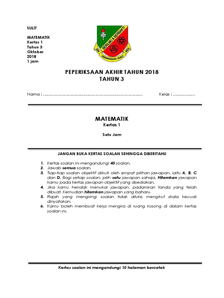Seperti yang kita sedia maklum, peperiksaan pertengahan tahun bagi tahun 2018 bakal dilaksanakan di semua sekolah iaitu pada bulan mei. Perhatian buat anda pelajar tingkatan tiga (3) yang bakal menduduki peperiksaan pentaksiran tingkatan tiga (pt3) tahun 2020. Contoh soalan esei pengajian am penggal 2 stpm, contoh soalan esei pengajian am penggal 2 2018, contoh soalan. Format soalan peperiksaan online bagi semua peperiksaan anjuran suruhanjaya perkhidmatan awam jom kita lihat contoh soalan peperiksaan online latihan separa perubatan 25/9/2018. Sumber pendidikan > kokurikulum > kertas ujian > koleksi bank soalan peperiksaan akhir tahun 3 2018.