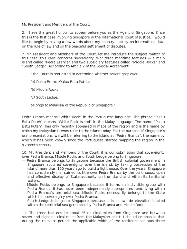 Matthias chang undertook a research on the pulau batu puteh case that was announced judgement friday at the icj and highlighted these few startling revelations. Case concerning sovereignty over pedra branca/pulau batu puteh, middle rocks and south ledge (malaysia/singapore) judgment of 23 may 2008 on 23 may 2008, the international court of justice. The dispute began in 1979 and was largely resolved by the international court of justice (icj) in 2008, which opined that pedra br. The case was formally registered by the icj as the "case concerning sovereignty over pedra branca/pulau batu puteh, middle rocks and south ledge (malaysia/singapore)".1 a proper appreciation of the case requires careful reading of the written pleadings and oral submissions of malaysia before the And (c) south ledge belongs to malaysia or the republic of singapore".
